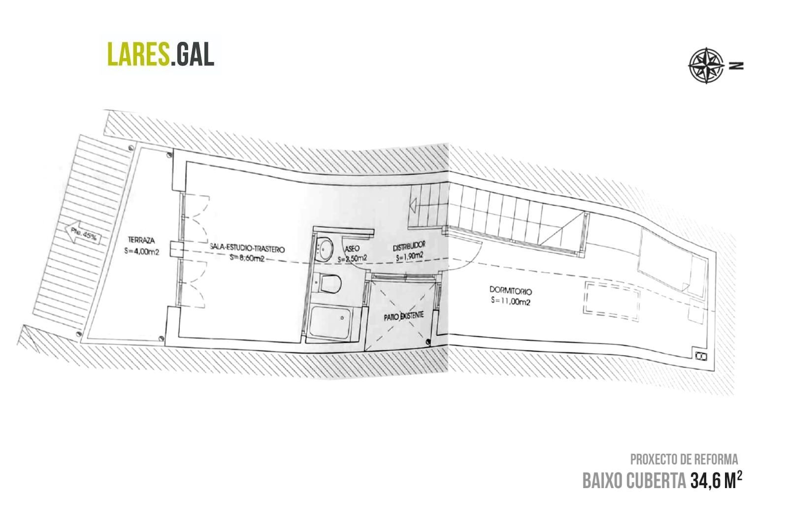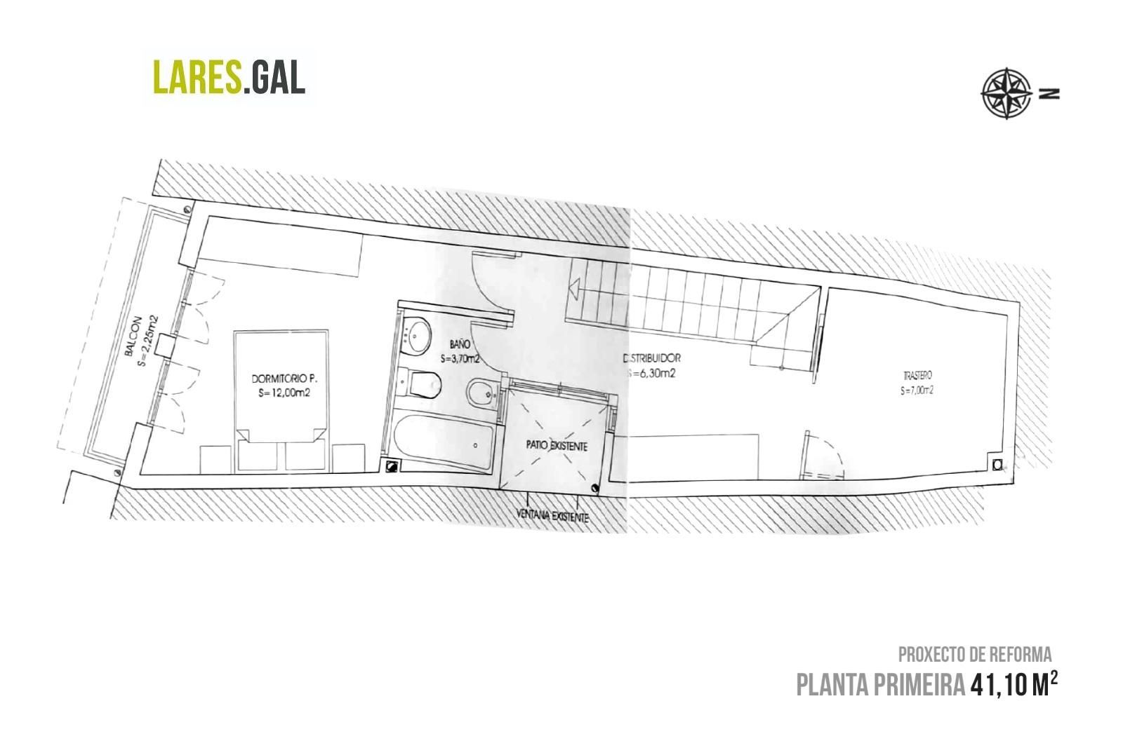 Casa lóbrega para reformar situada en la Plaza de Síngulis, en el Casco Viejo de Cangas.