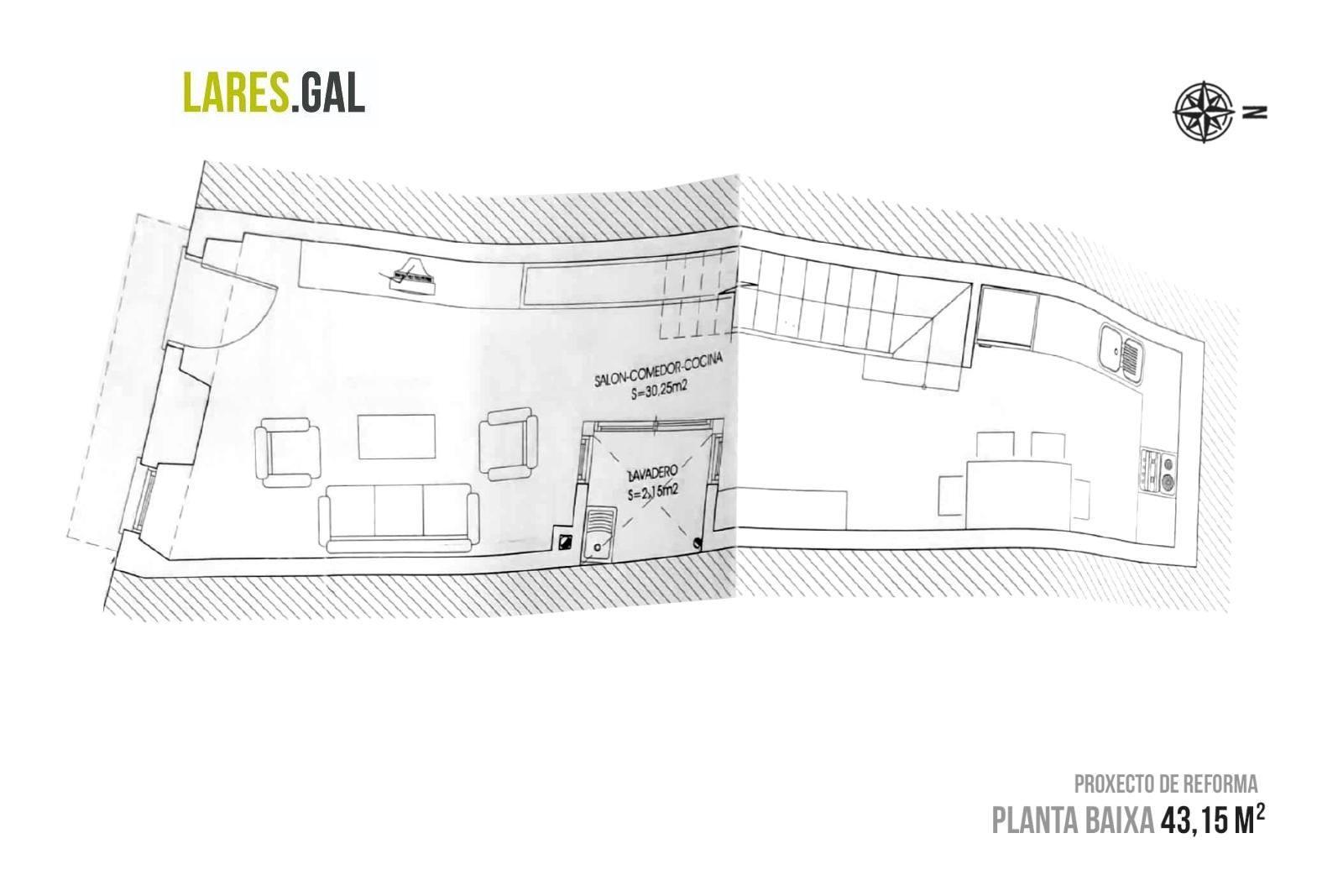 La vivienda en su estado actual está constituida por planta baja con una superficie de 43 m².