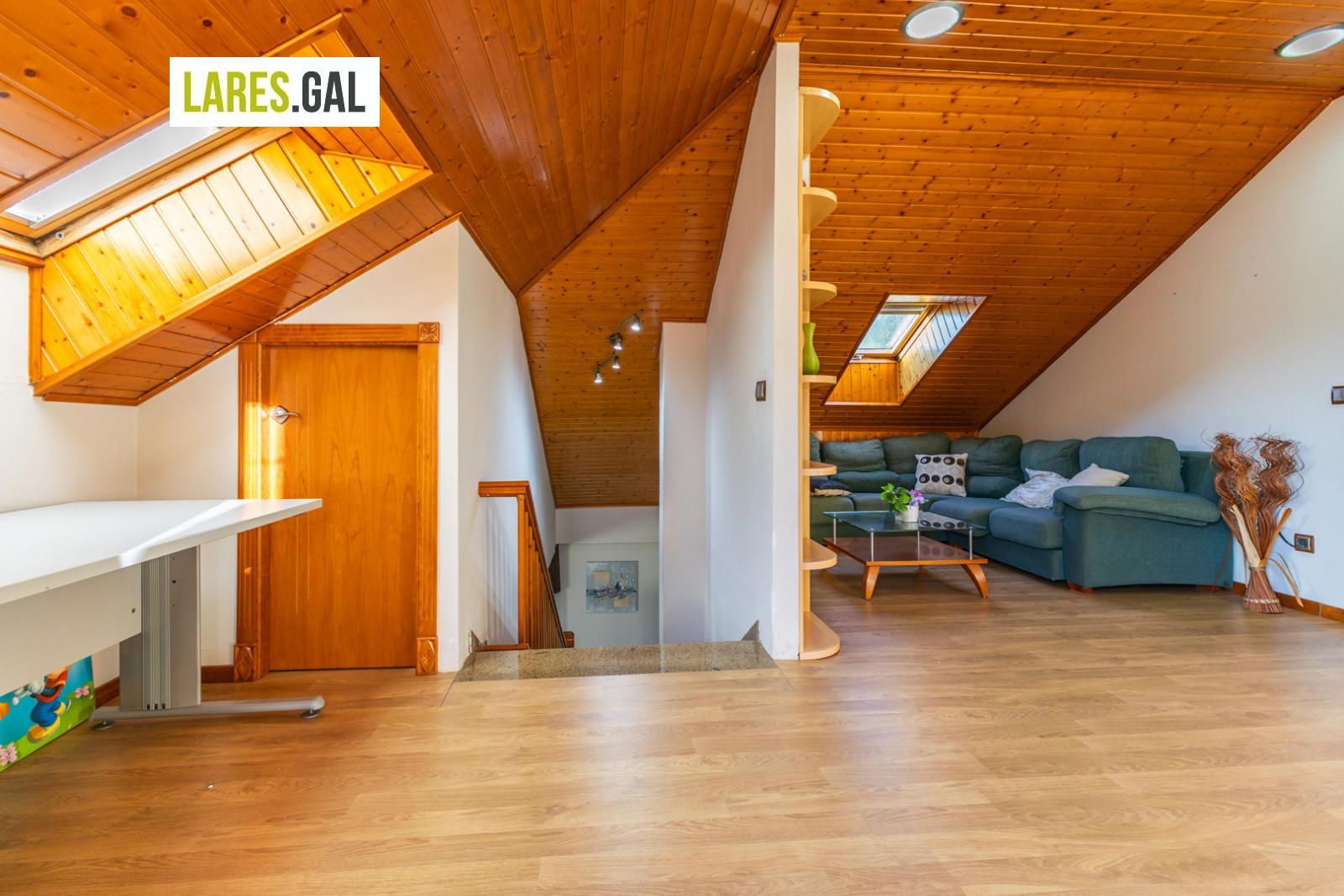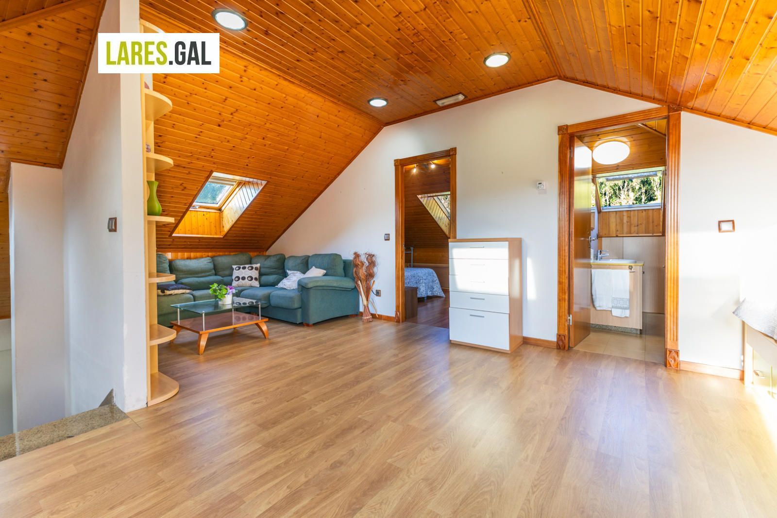 Desde esta planta se accede interiormente a la planta bajo cubierta, de 34 m², donde se encuentra una acogedora y amplísima sala de estar, un dormitorio independiente, un baño con ducha y una terraza con vistas panorámicas, con techos abuhardillados revestidos con friso de madera barnizada.